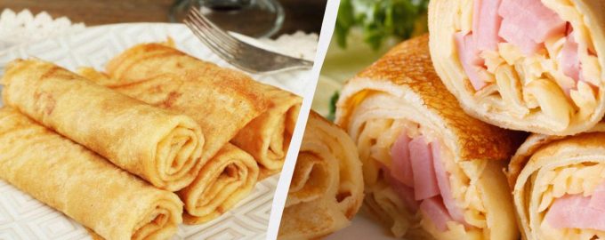 Doldurulmuş krepler, ne kadar pişirirseniz pişirin, bıkmayacağınız evrensel bir yemektir. Hem doyurucu hem de hazırlaması kolay. Peynirli ve jambonlu harika rulolar yapmanızı öneririz – bu, restoranlardaki krepler için en popüler dolgudur. Tarifleri kesinlikle favoriniz olacak.